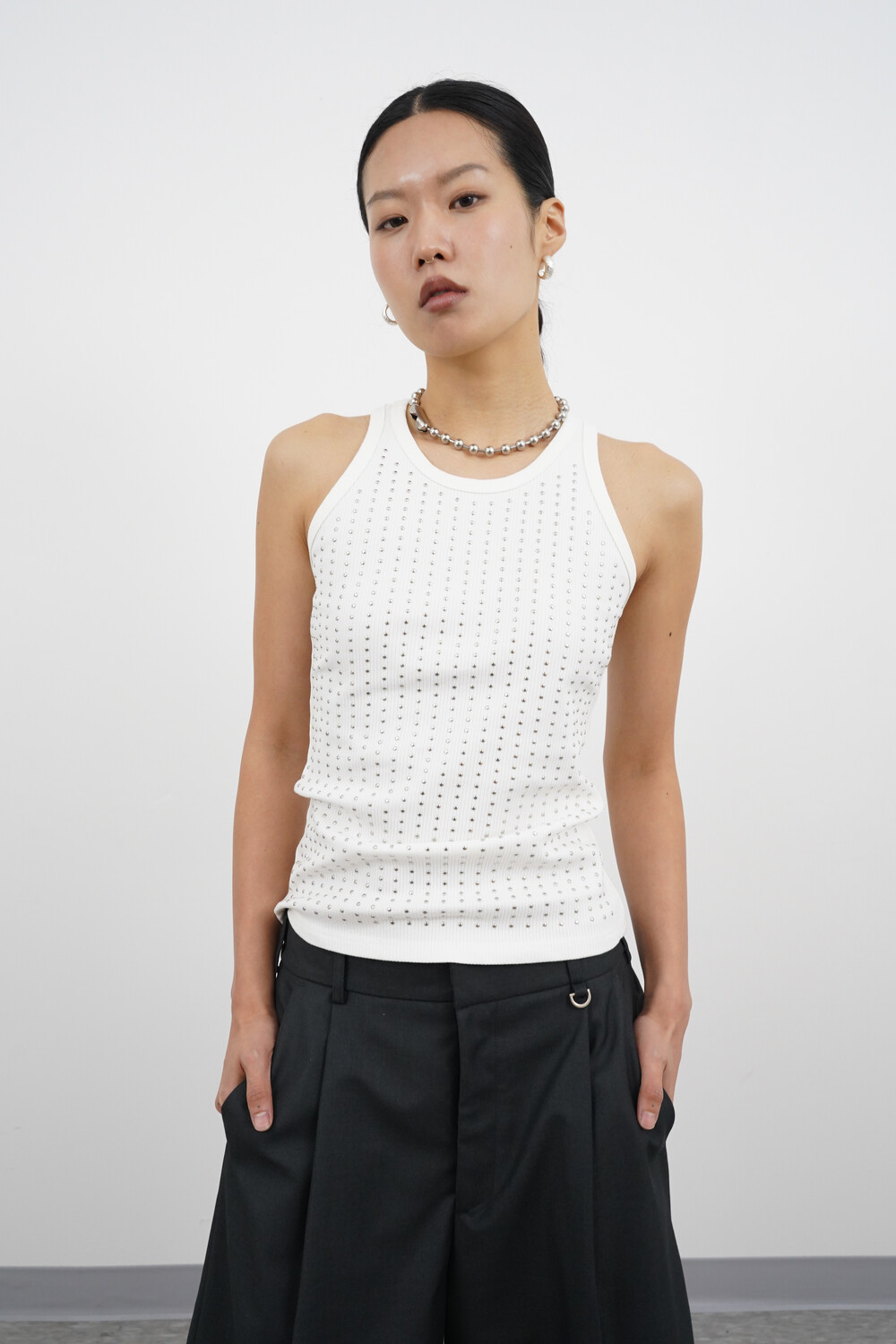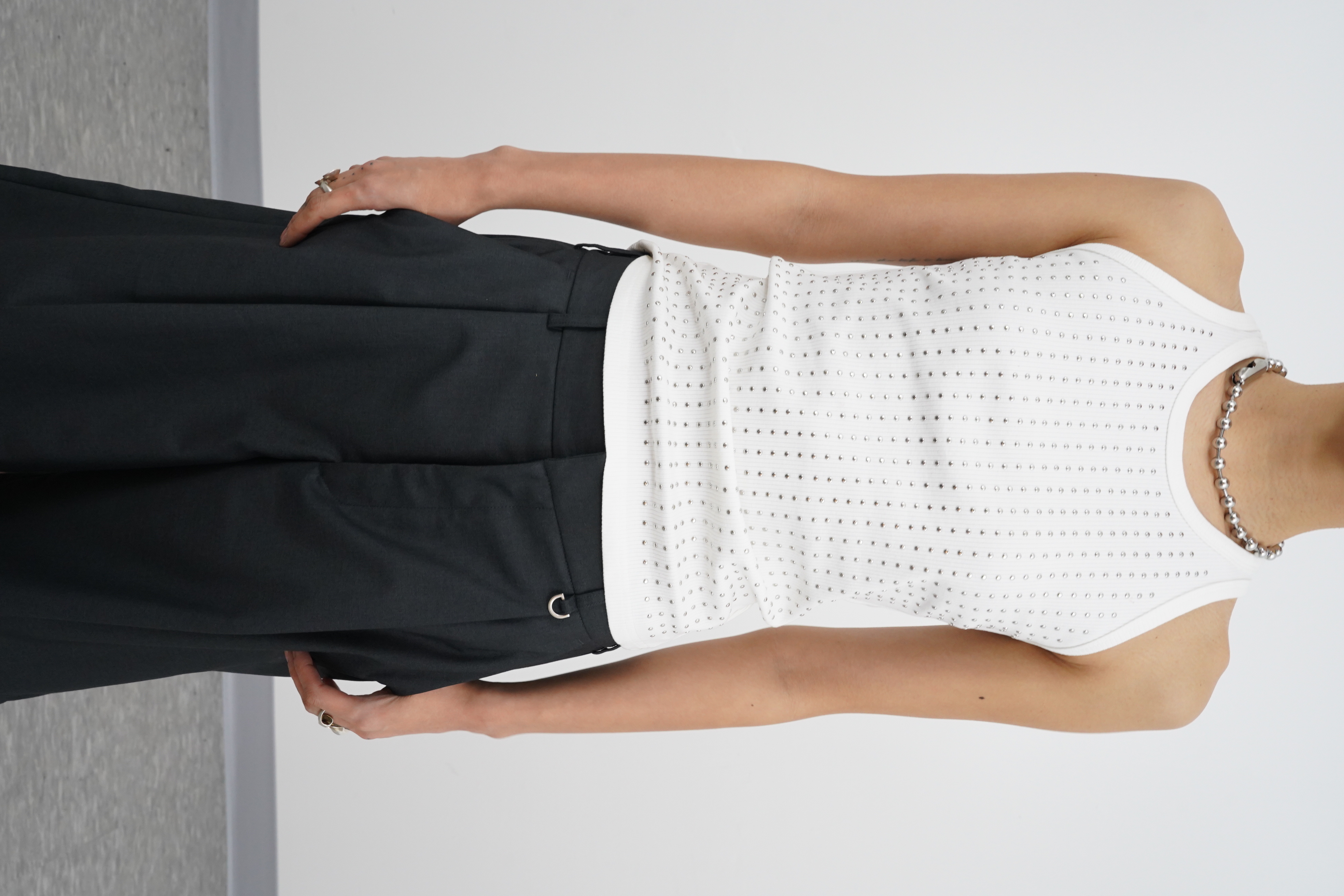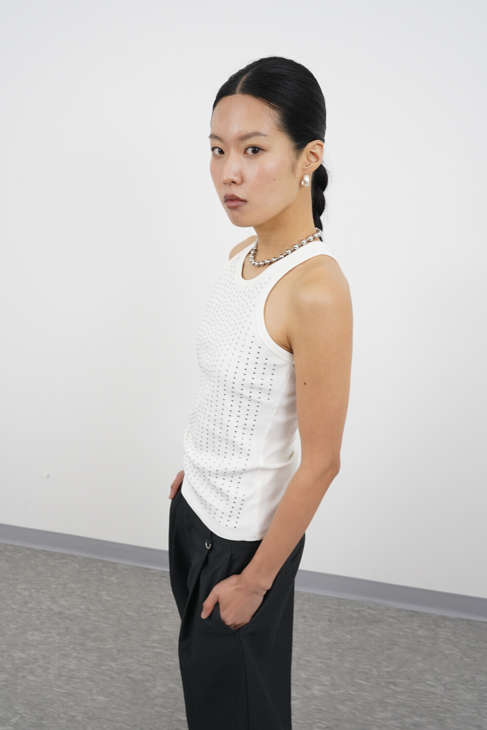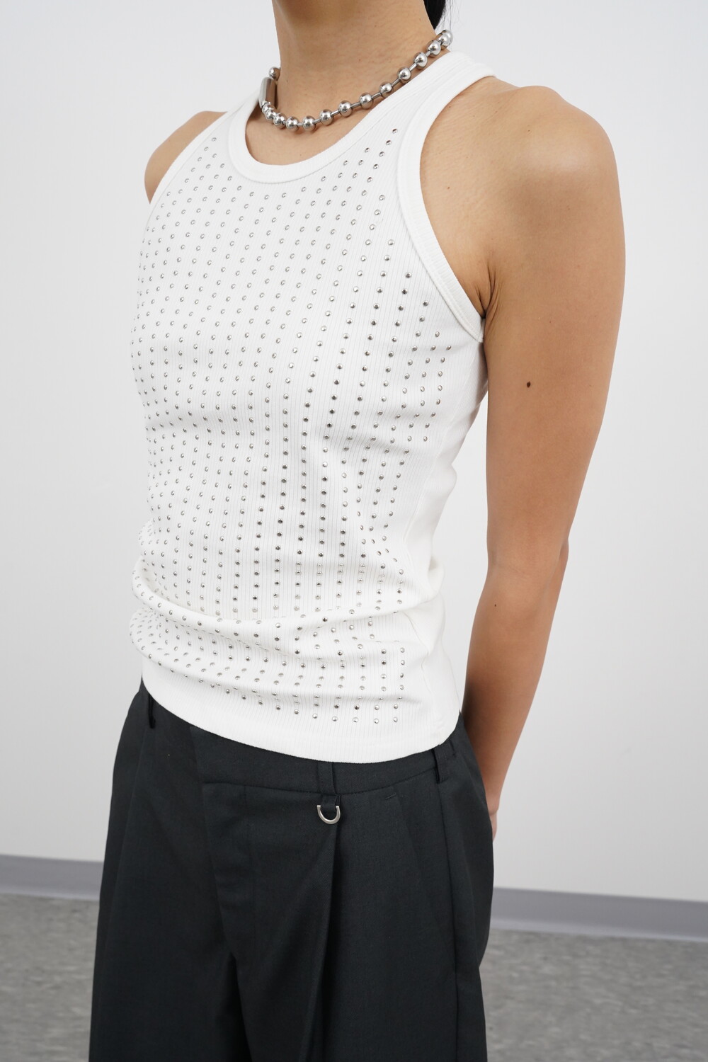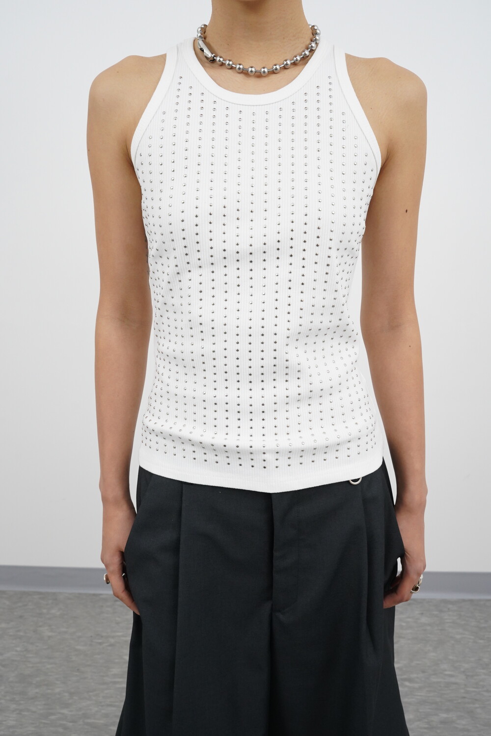 * 전면 가득히 배치된 실버 스터드 디테일로 포인트가 되는 디자인.