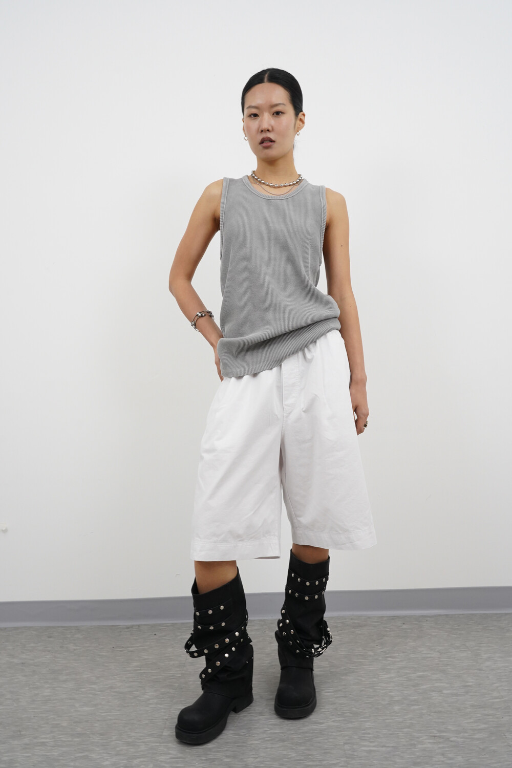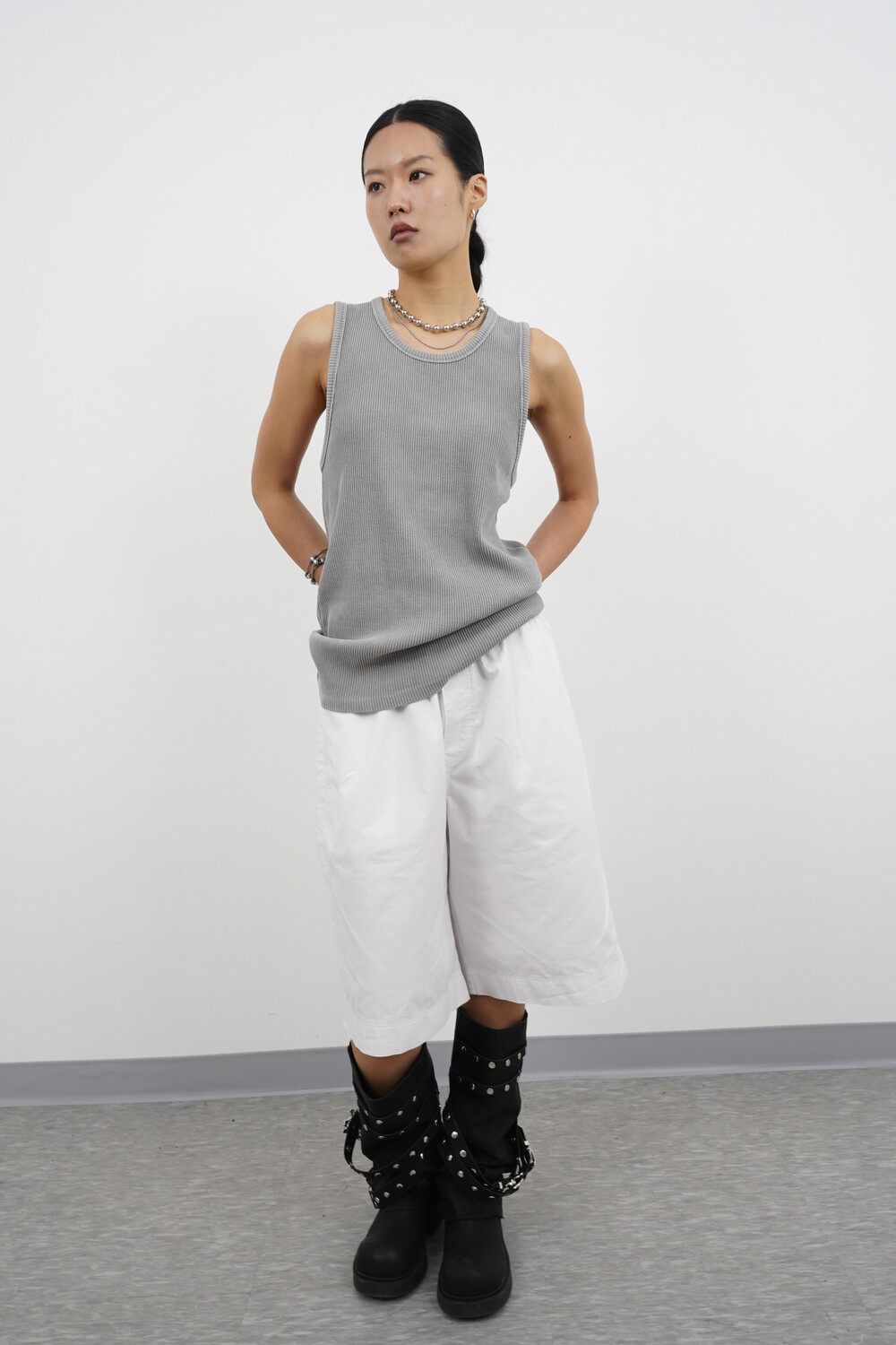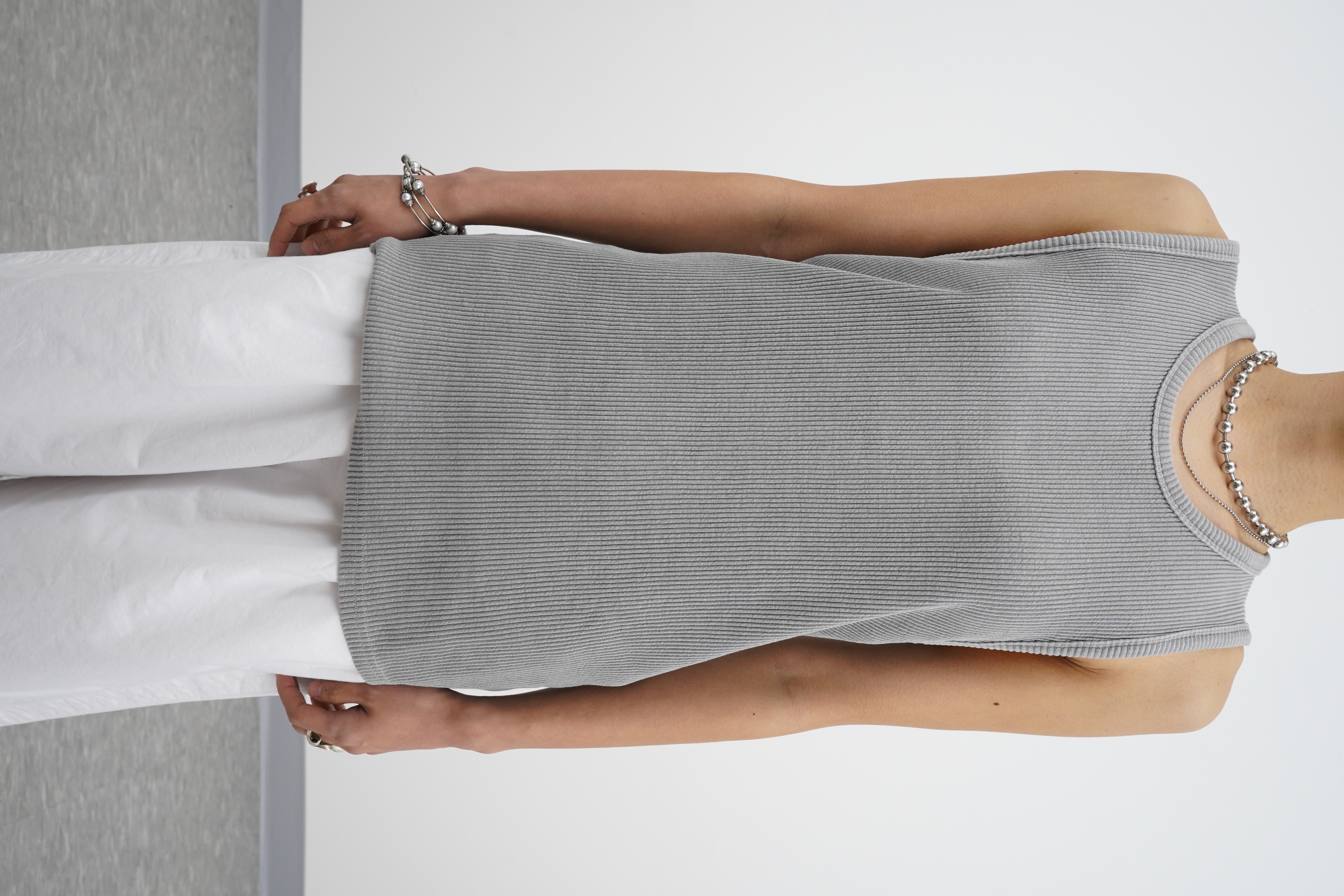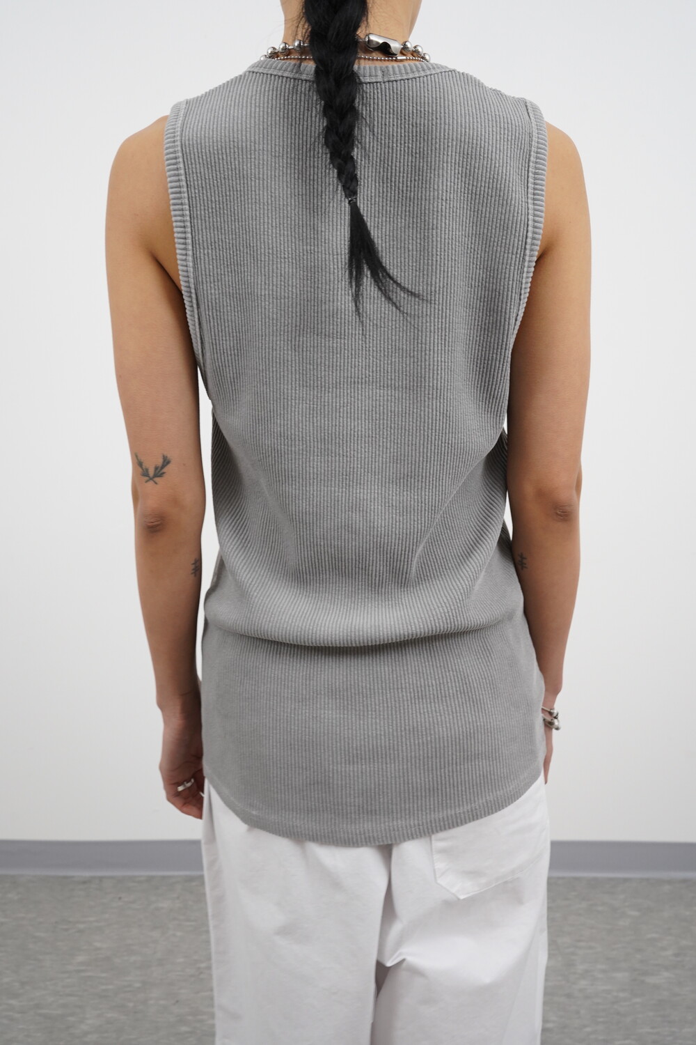 헤비골지 텍스처로 자연스럽게 떨어지는 슬리브리스 탑입니다.
