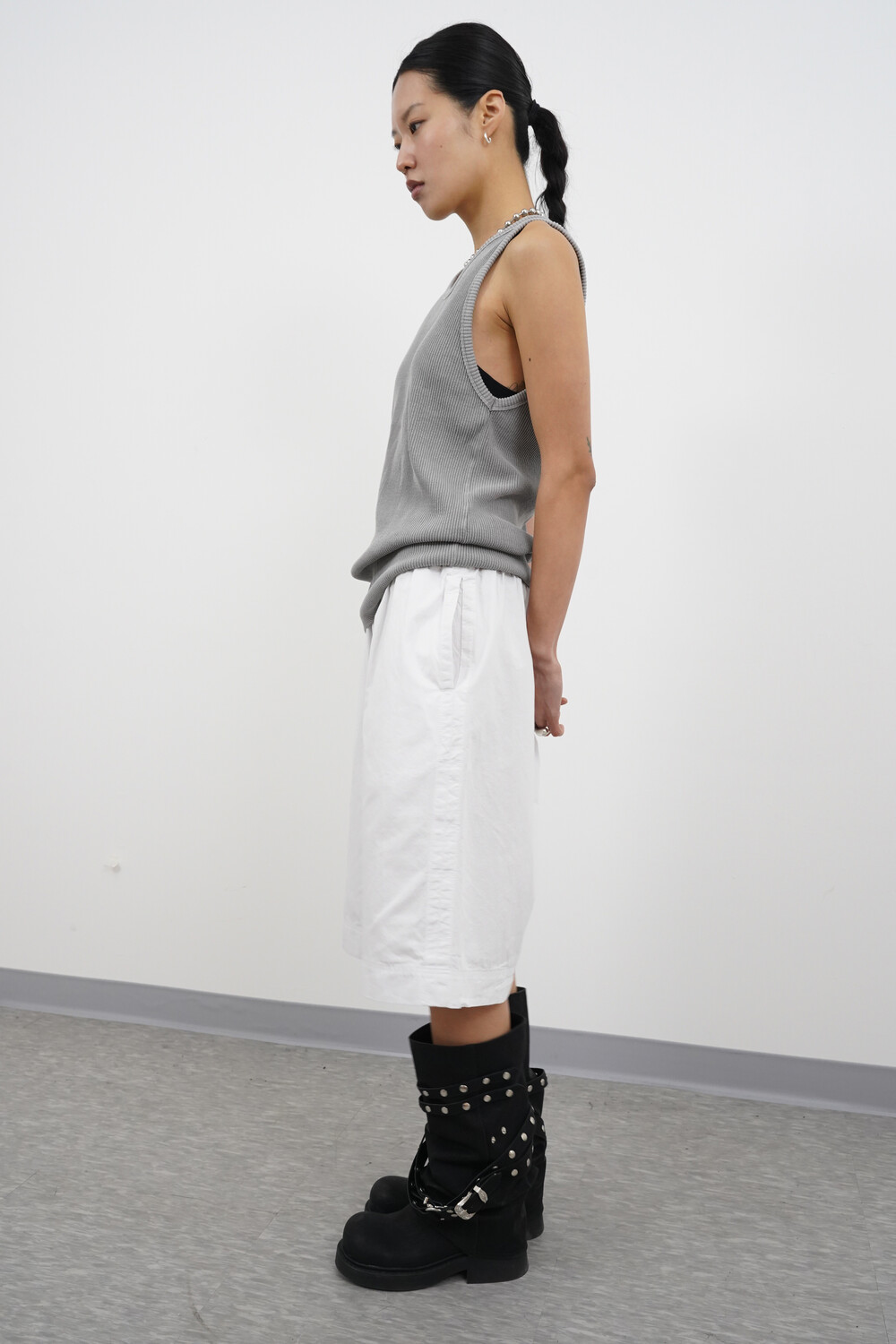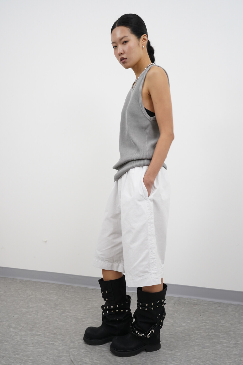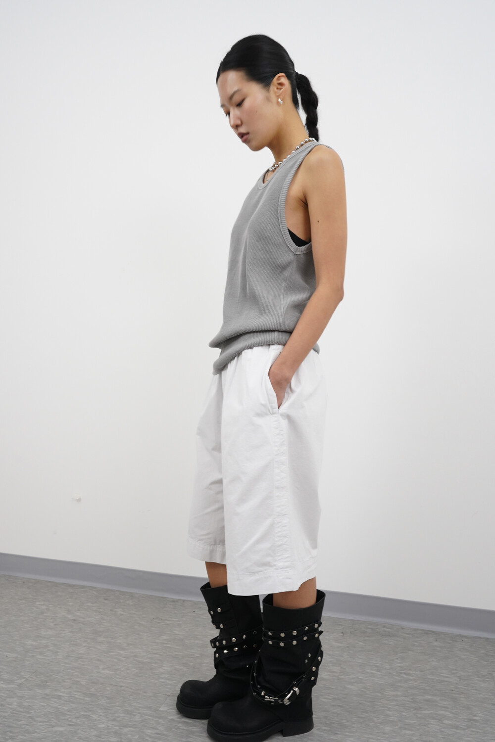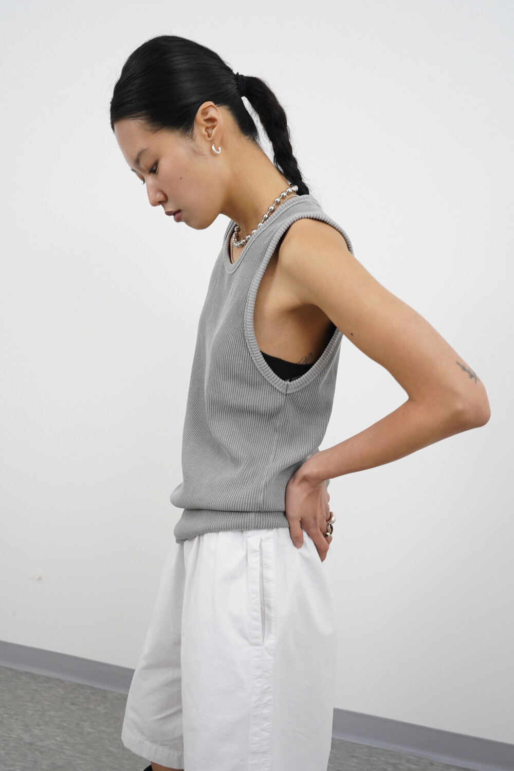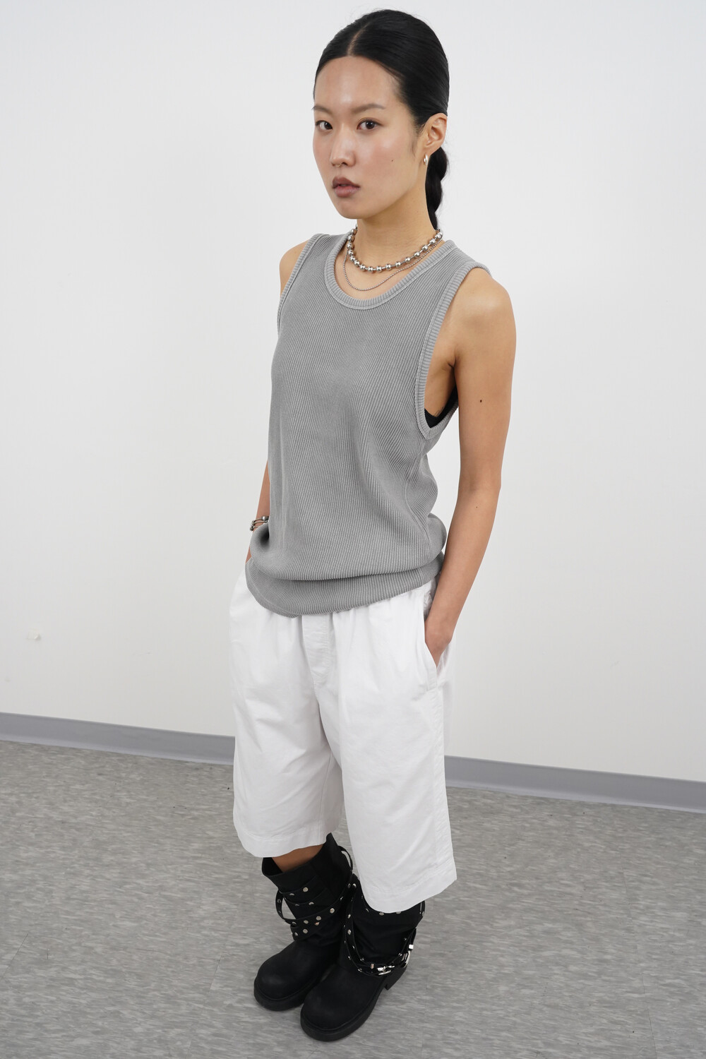 헤비골지 텍스처로 자연스럽게 떨어지는 슬리브리스 탑입니다.
