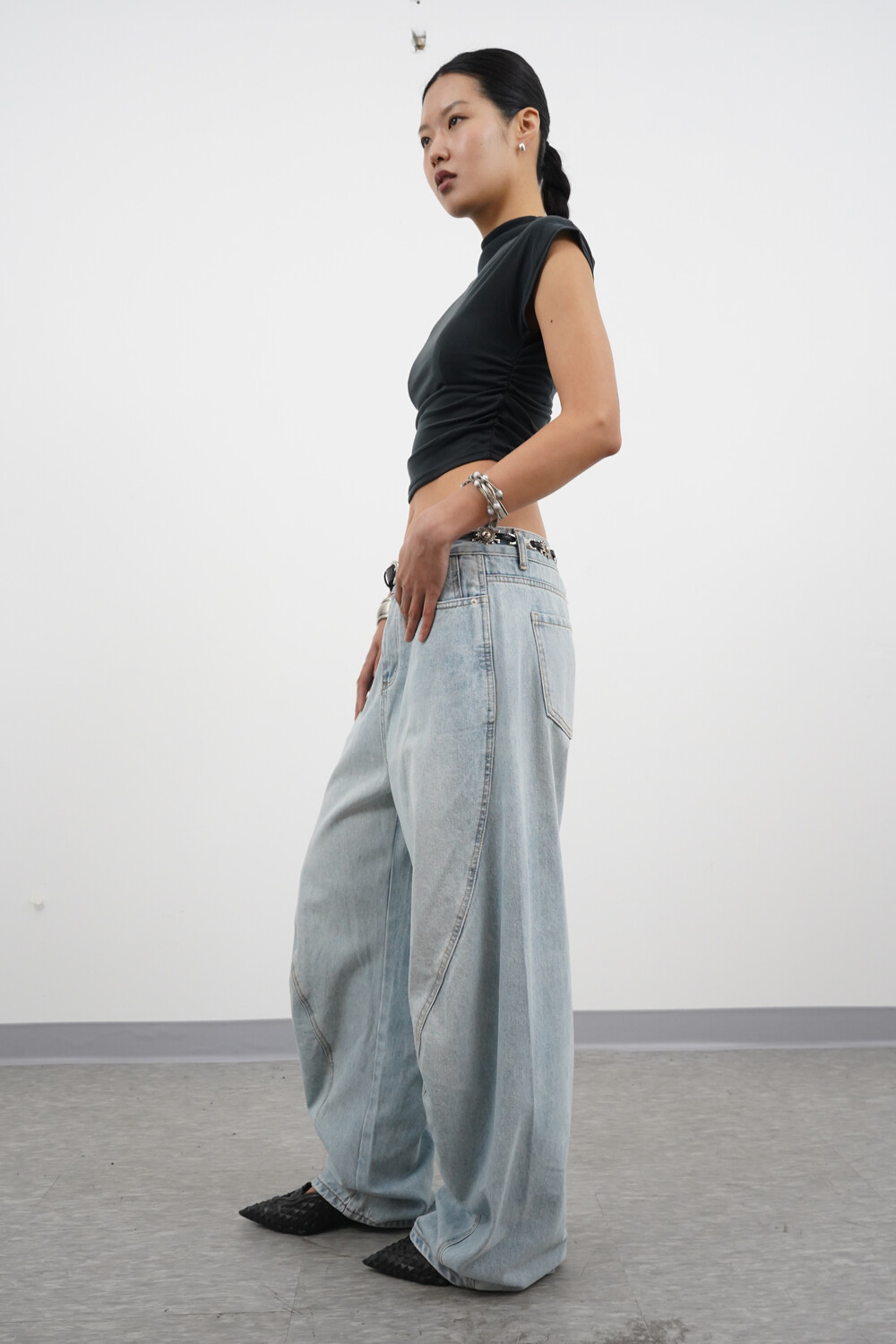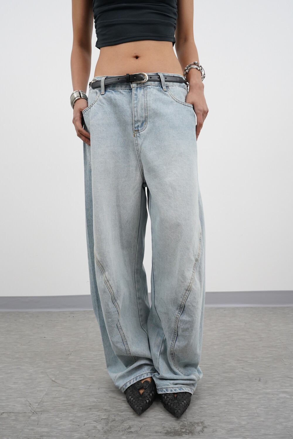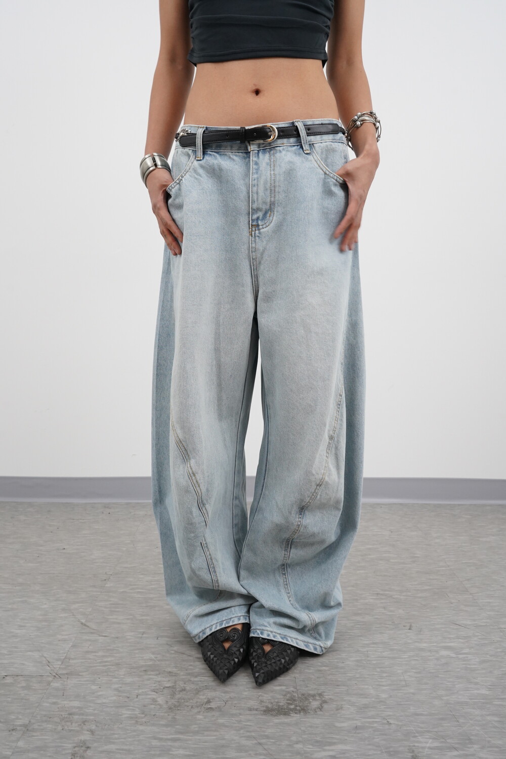 벌룬 와이드 핏에 커브 절개 디테일로