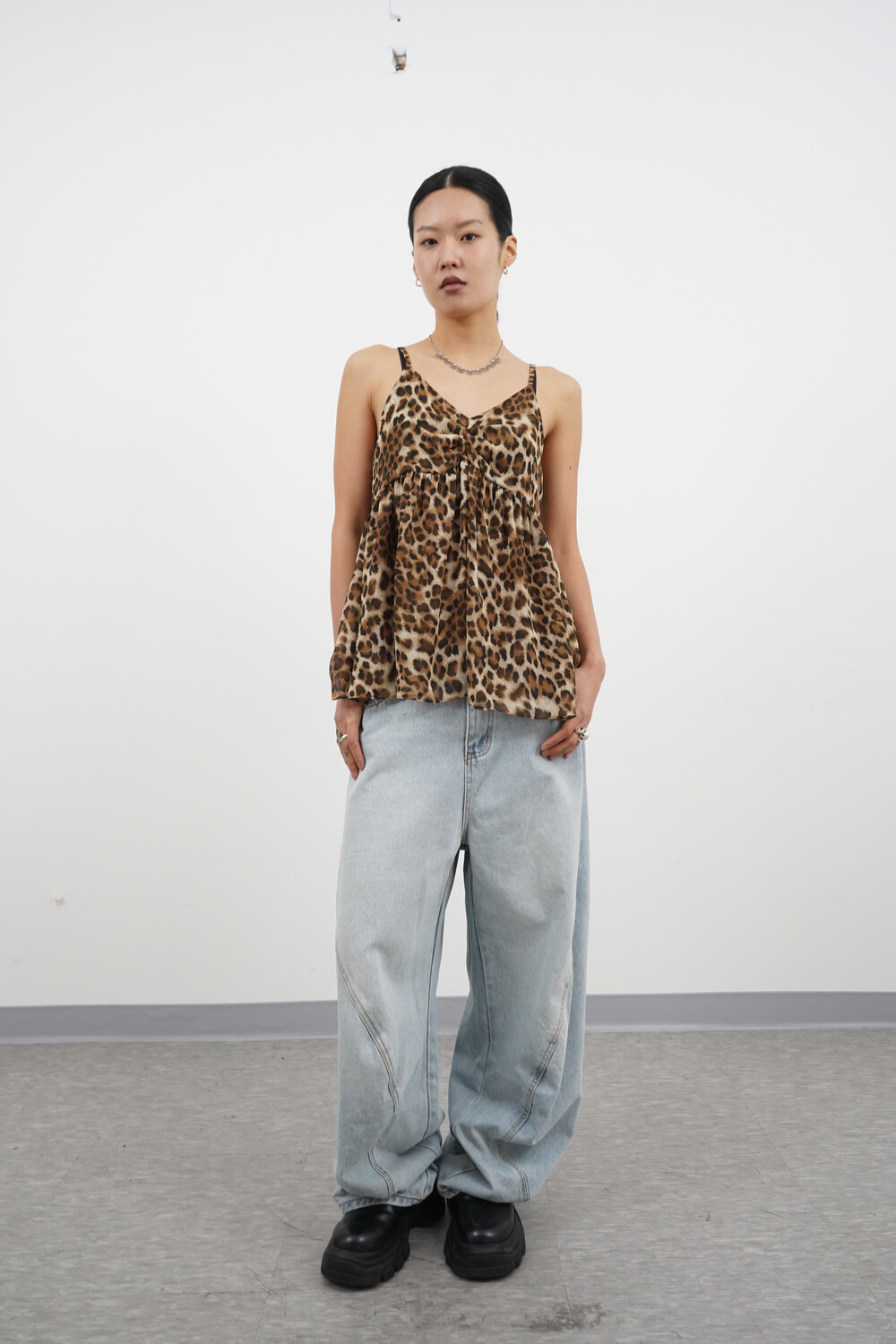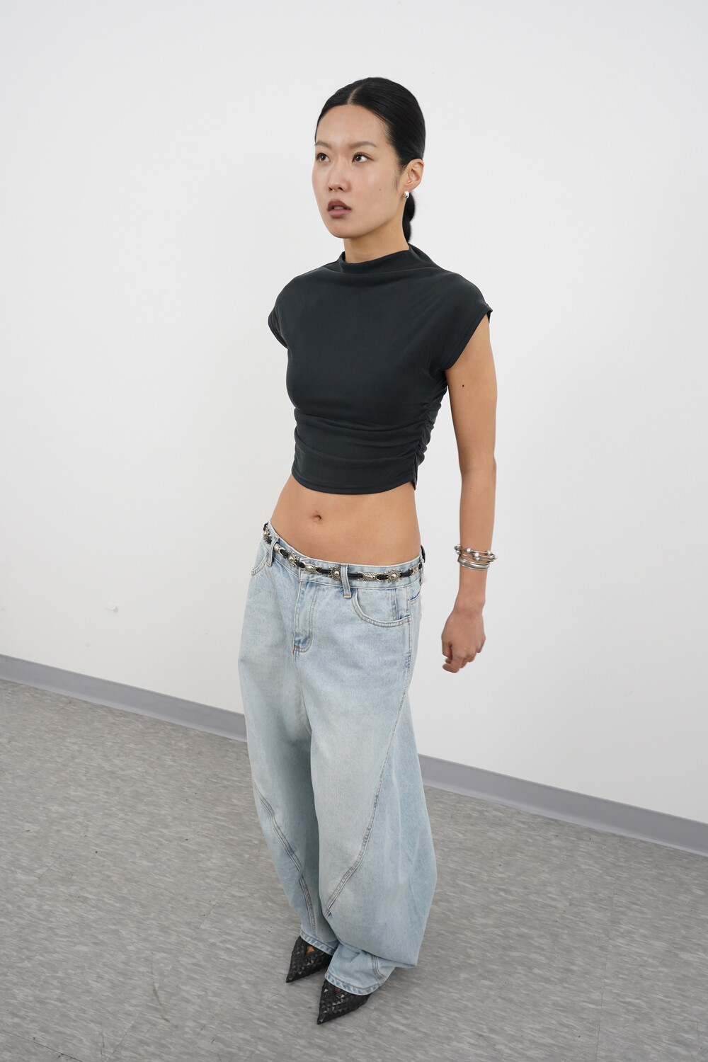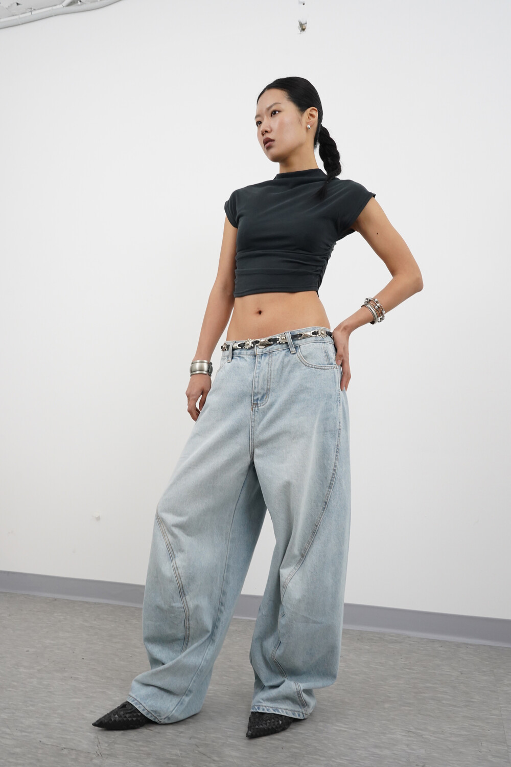 벌룬 와이드 핏에 커브 절개 디테일로