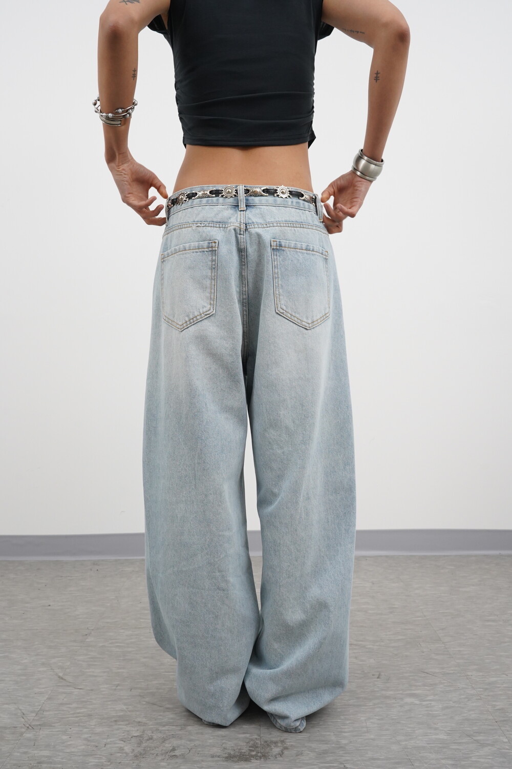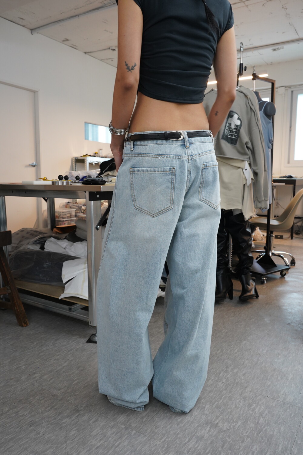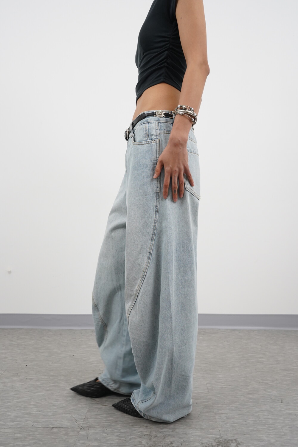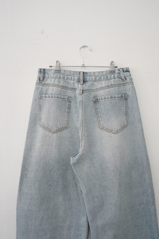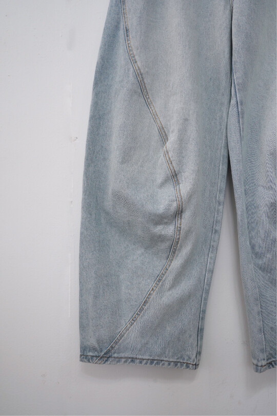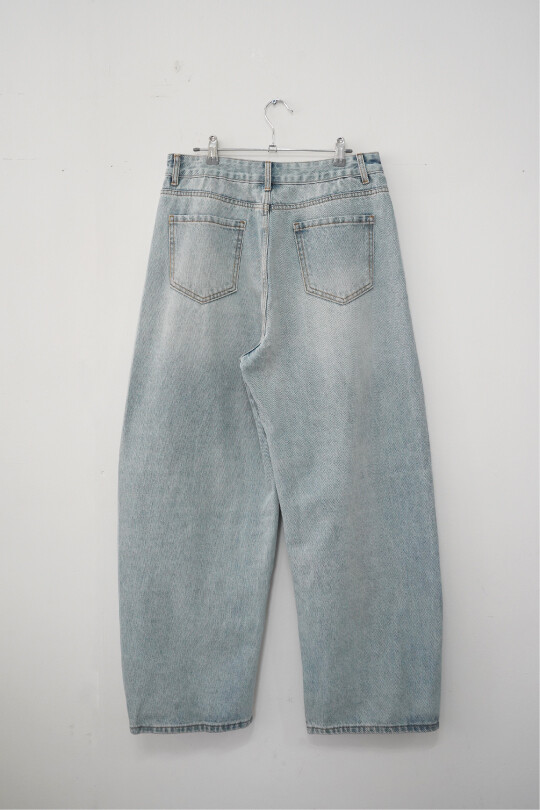 볼륨감 있는 실루엣이 특징인 데님팬츠입니다.