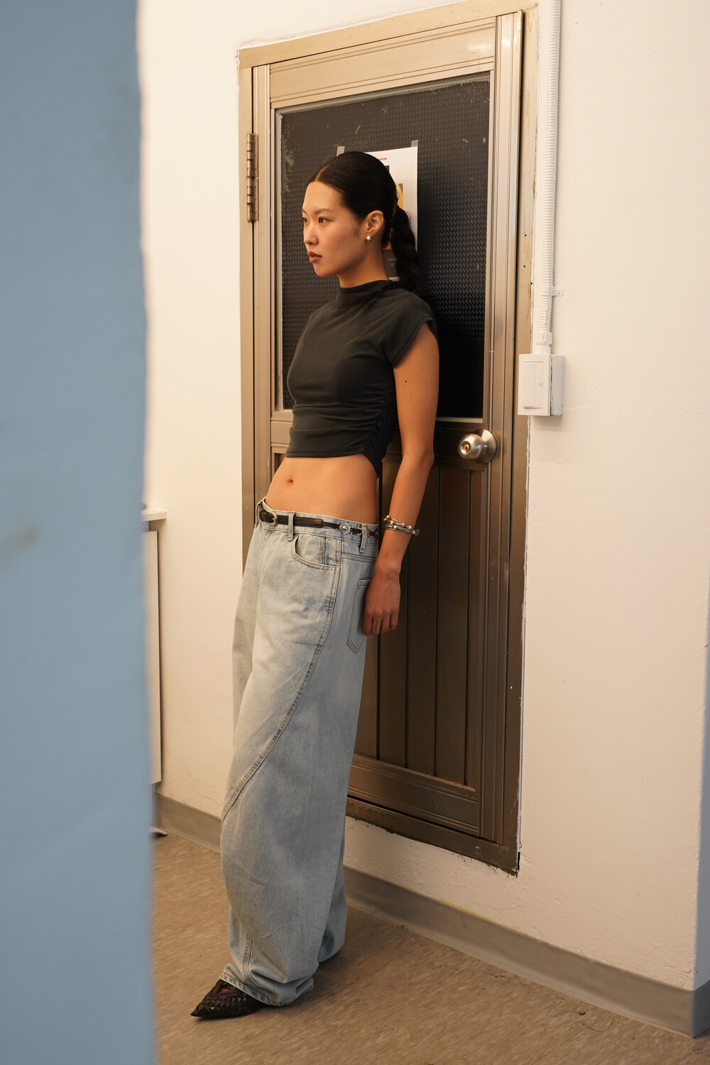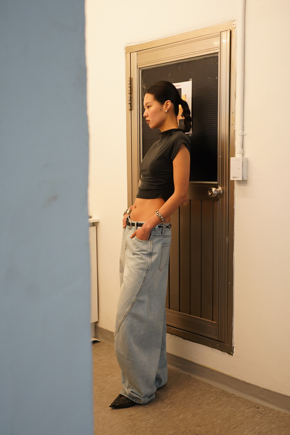 여유로운 핏으로 착용되었습니다.