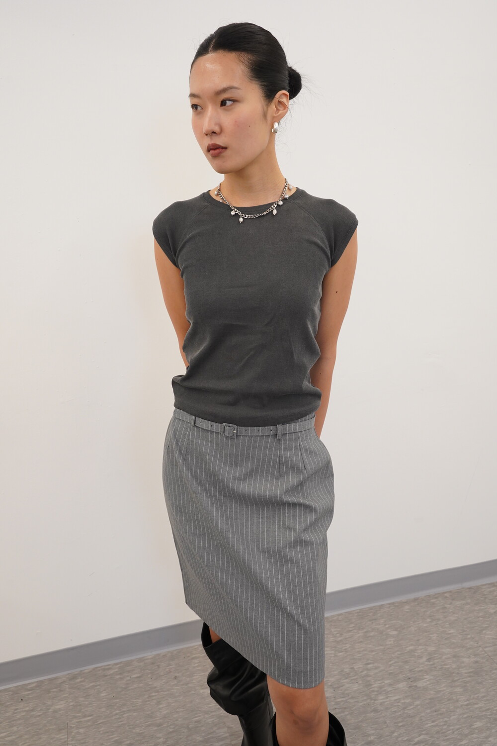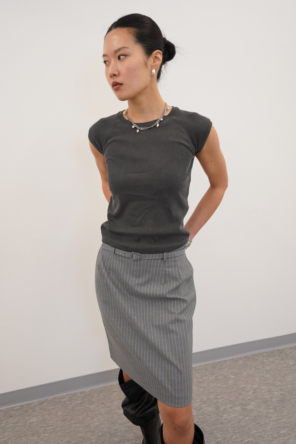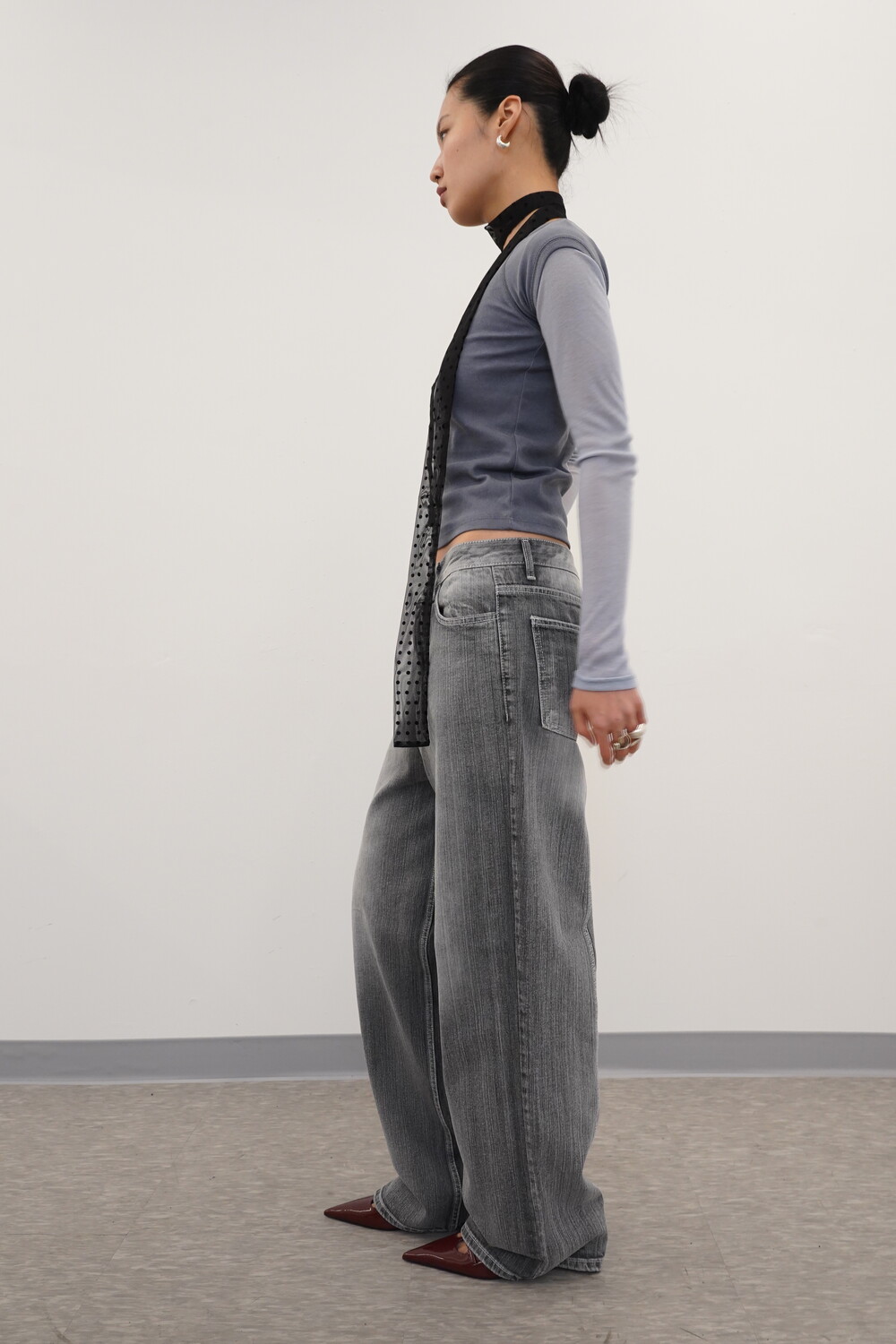 여유로운 핏으로 착용되었습니다.