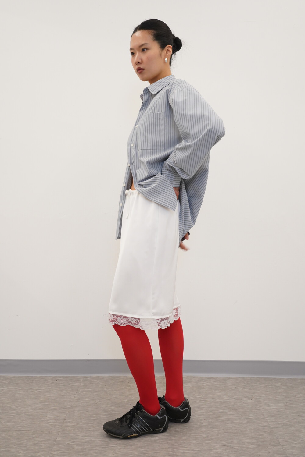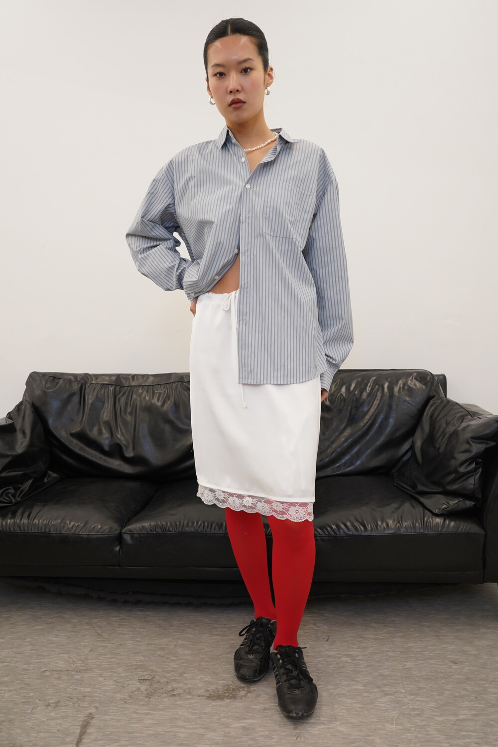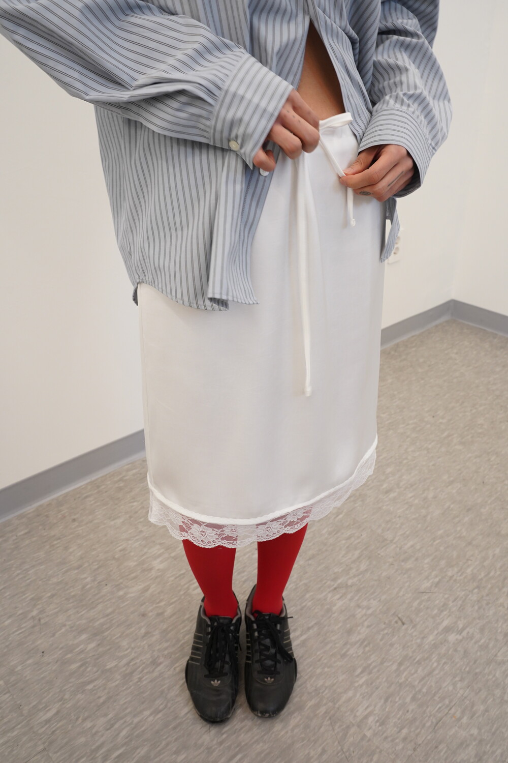 밑단 레이스가 포인트가 되는 란제리 스커트입니다.
