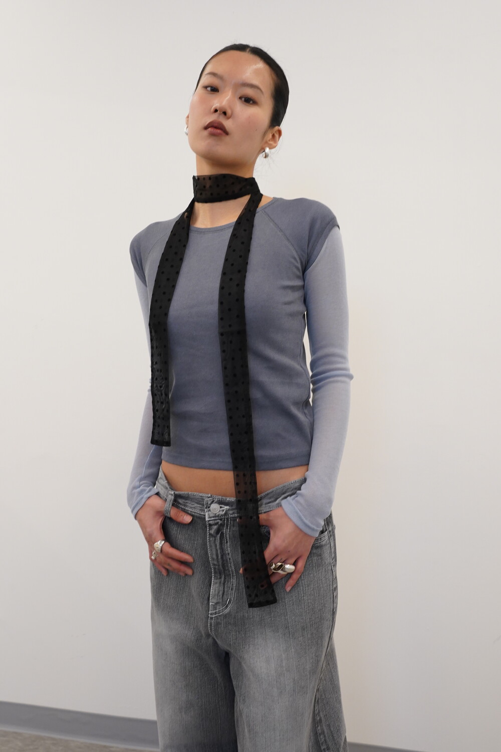도트패턴이 매력적인 시스루 스카프입니다.
